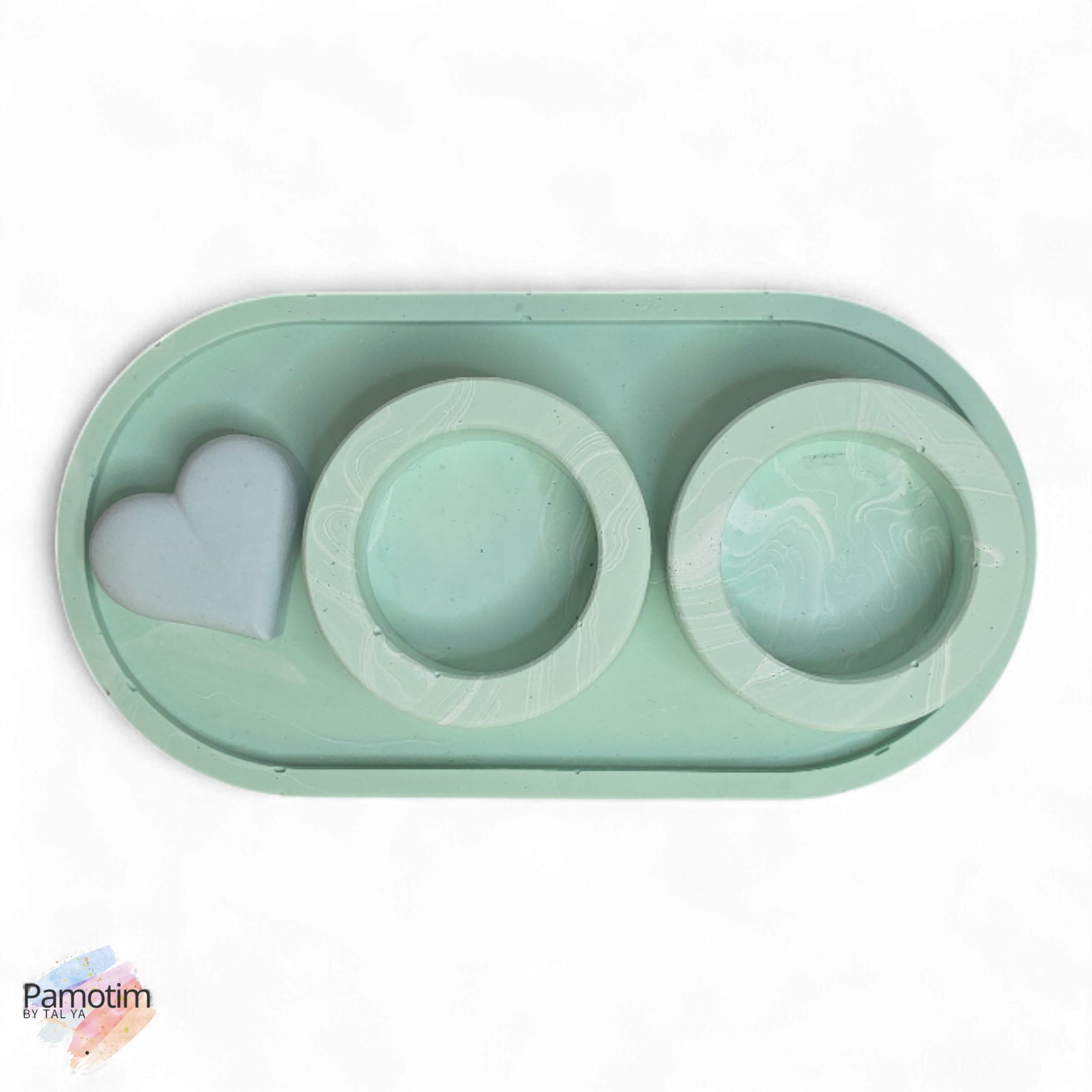 מגש פמוטים מעוצב בגוון מנטה רך, יוצק מבטון פולימרי איכותי.